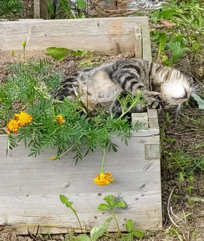 Anyway here is a cat I know drunk on the smell of flowers: