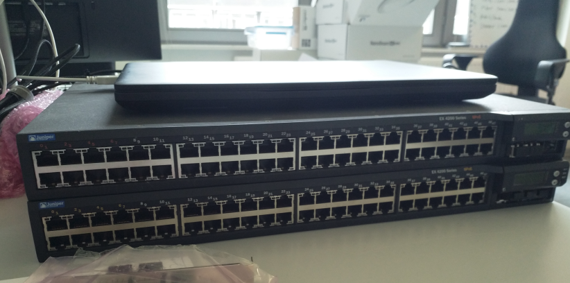 and i got a pair of juniper ex4200 switches, so i could run ha storage and ip networks.
