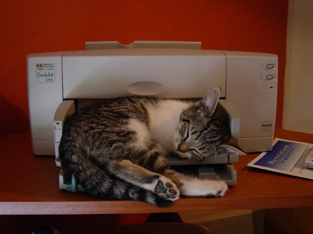 its a wonderful world where white hatted hackers make old deskjet 720C series print out sleeping cute kittens. :)