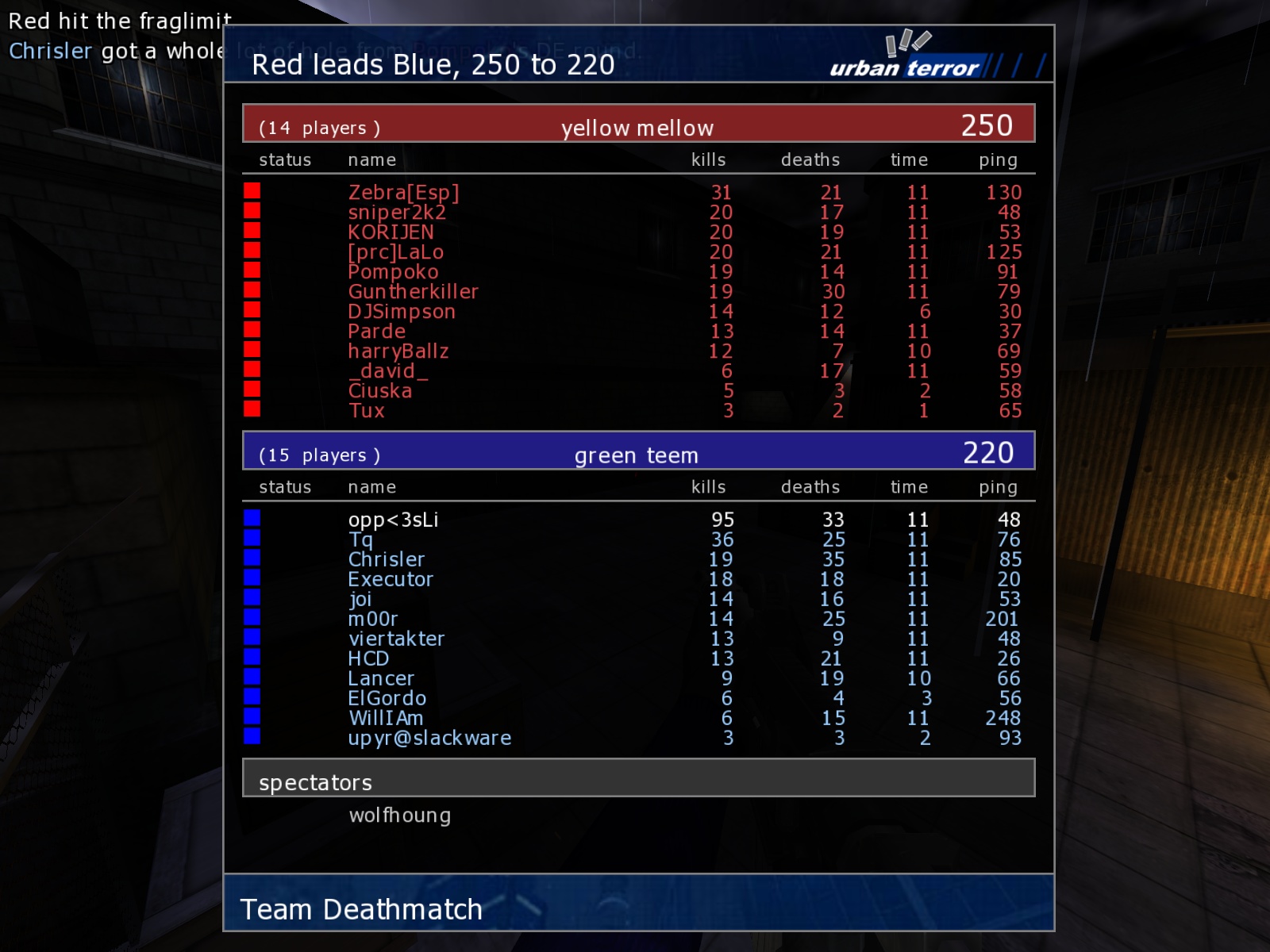 Well since now fraglimit is 333 and timelimit is 14 AND you have 45 players it is easier to get more frags. I've seen people who usually had score 30-40 10-20 now have something like 50-60 15-25, and even more.
