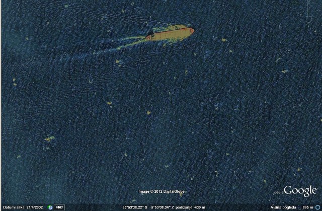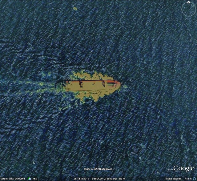 Why do some ships look so creepy on Google Earth? Infrared imaging or what?
